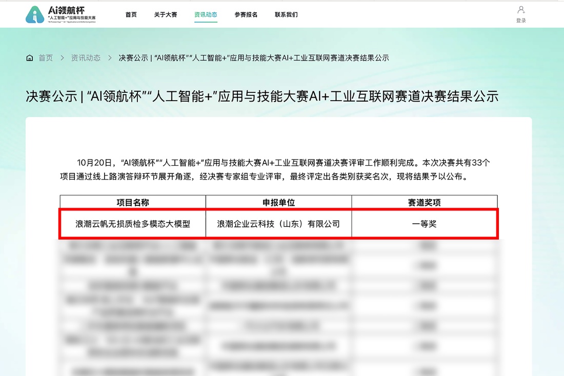为深入贯彻落实中央经济工作会议关于“以科技创新引领新质生产力发展,开展‘人工智能+’行动,培育未来产业”的战略部署,充分发挥人工智能在推动产业升级、服务社会发展中的核心作用,近日,由中国互联网协会举办的首届“AI领航杯”“人工智能+”应用与技能大赛各赛道赛事圆满收官。浪潮企业云交通金融云事业部提报的“浪潮云帆无损质检多模态大模型”在“AI+工业互联网”赛道中斩获全国一等奖,技术创新性与产业应用价值得到专家评审委员会的高度认可,充分展现了其在AI领域的技术创新力。