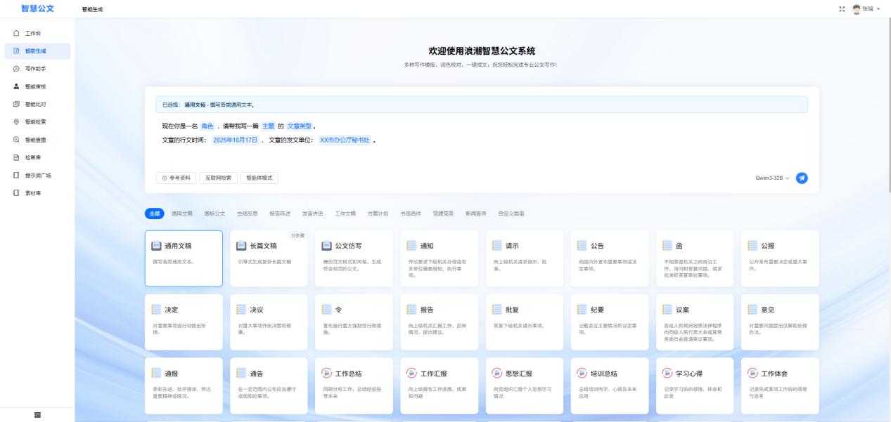 公文是党政机关实施领导、履行职能、处理公务的重要手段与沟通桥梁,作为政府工作的重要载体,公文的质量直接关系到政府形象和工作效率。为积极响应《关于加快人工智能赋能重点领域高质量发展的推进方案》以及《山东省数字政府建设一体化综合改革方案》要求,浪潮云助力烟台市大数据局打造智慧公文智能体,破解人工处理耗时久、易出错的痛点,提升办文质效,实现烟台市数字经济发展规划中“提升数字政务高效协同”的目标。