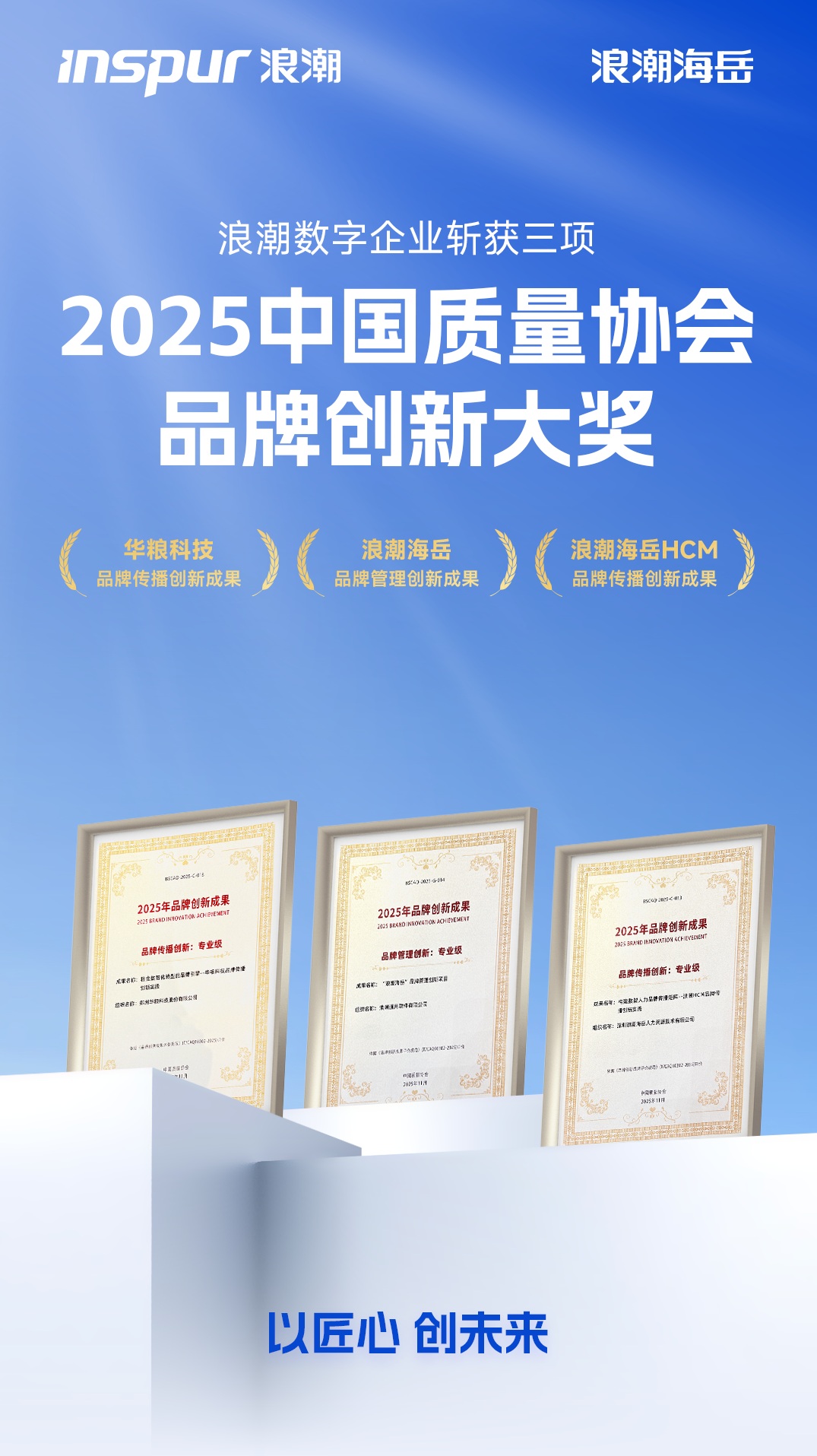 11月21日,2025年品牌创新大会暨第十三届全国品牌故事大赛总决赛在山东青岛举行。大会以“创新赋能高质量发展 品牌引领可持续未来”为主题,汇聚政府、院校、协会、企业及媒体代表,共商品牌发展。会上发布年度品牌创新成果,浪潮数字企业凭借卓越的品牌建设与实践成果,一举斩获三项大奖,浪潮海岳荣获品牌管理创新成果奖,浪潮海岳HCM与华粮科技双双获得品牌传播创新成果奖。