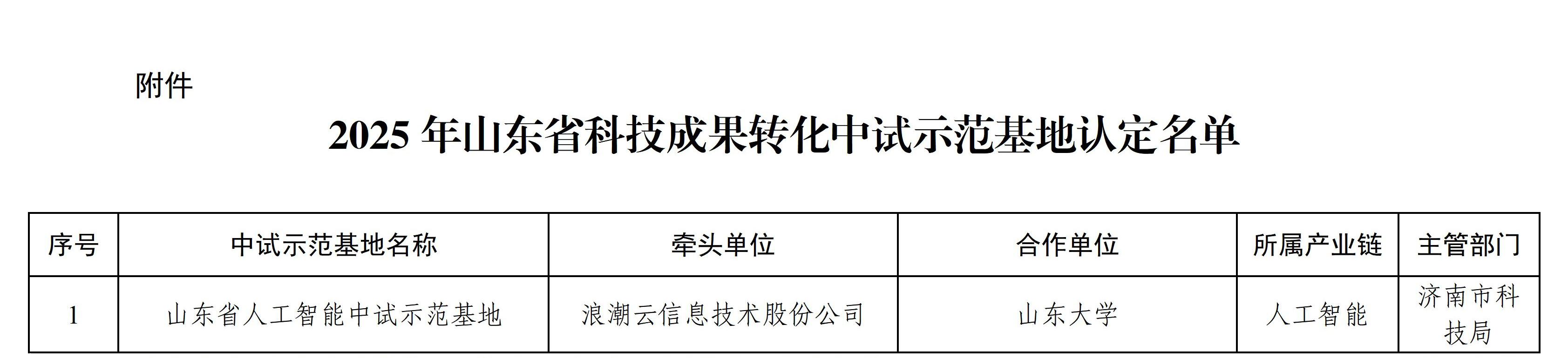 近日,山东省科学技术厅发布2025年山东省科技成果转化中试示范基地认定名单,由浪潮云联合山东大学共建的“山东省人工智能中试示范基地”成功入选,充分彰显了浪潮云在人工智能领域的创新能力与卓越实践。