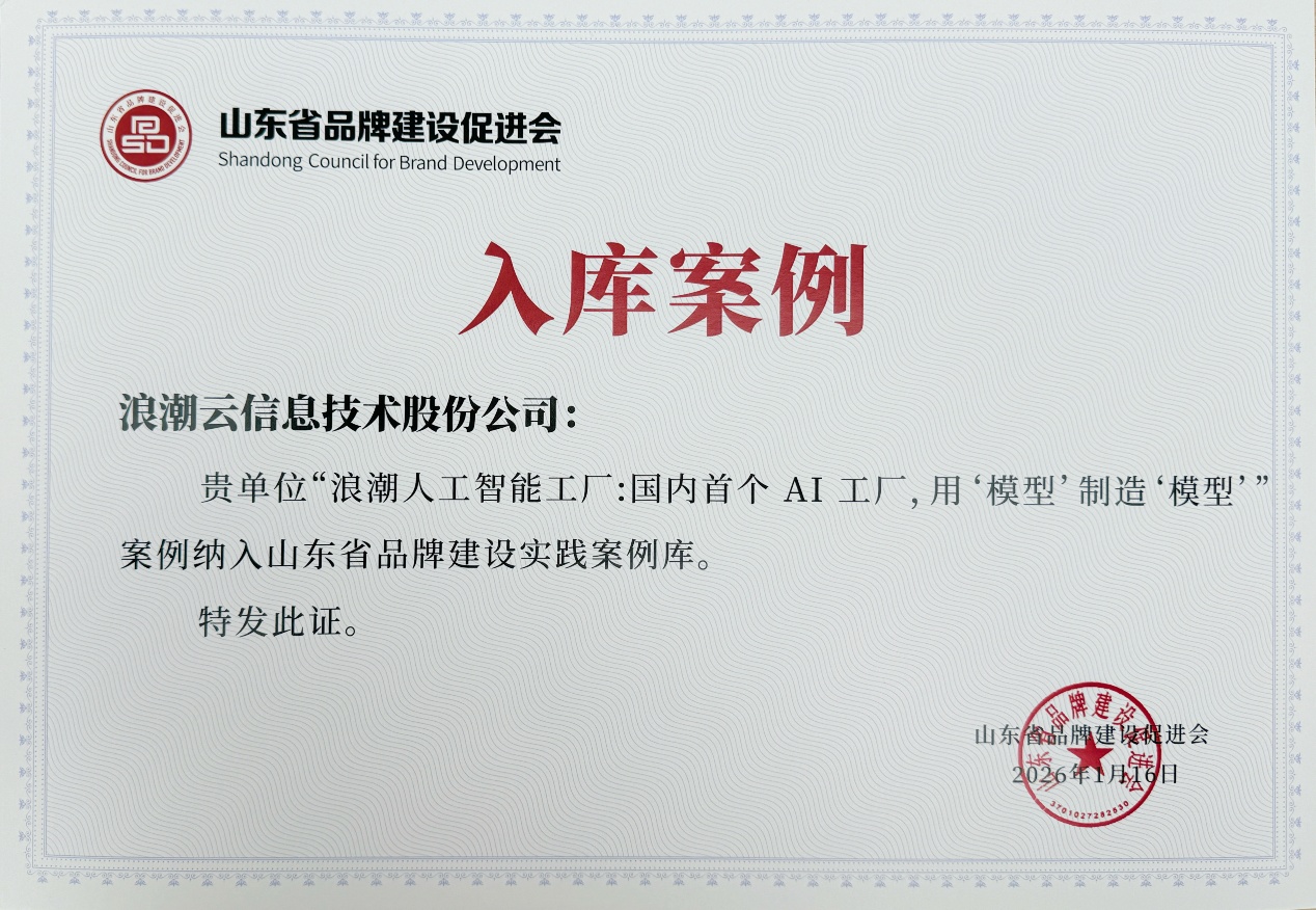 山东省品牌建设促进会作为推动全省品牌战略实施的专业组织,旨在发掘推广具有示范性、创新性的品牌建设经验,为全省品牌高质量发展提供范本。浪潮人工智能工厂的入选,充分彰显了浪潮云在赋能政企数智化转型、支撑产业升级中的品牌示范作用。