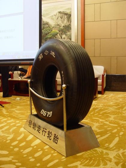 2008年初,345/85R16 GL090A样胎成功问世,经室内试验验证,各项性能均优于外资同类产品。2009年1月,首批国产轻轨轮胎上线实车试运行,同年,该产品完成全流程试验,累计行驶超6万公里,通过专家评审并全面推广,彻底打破国际垄断。
