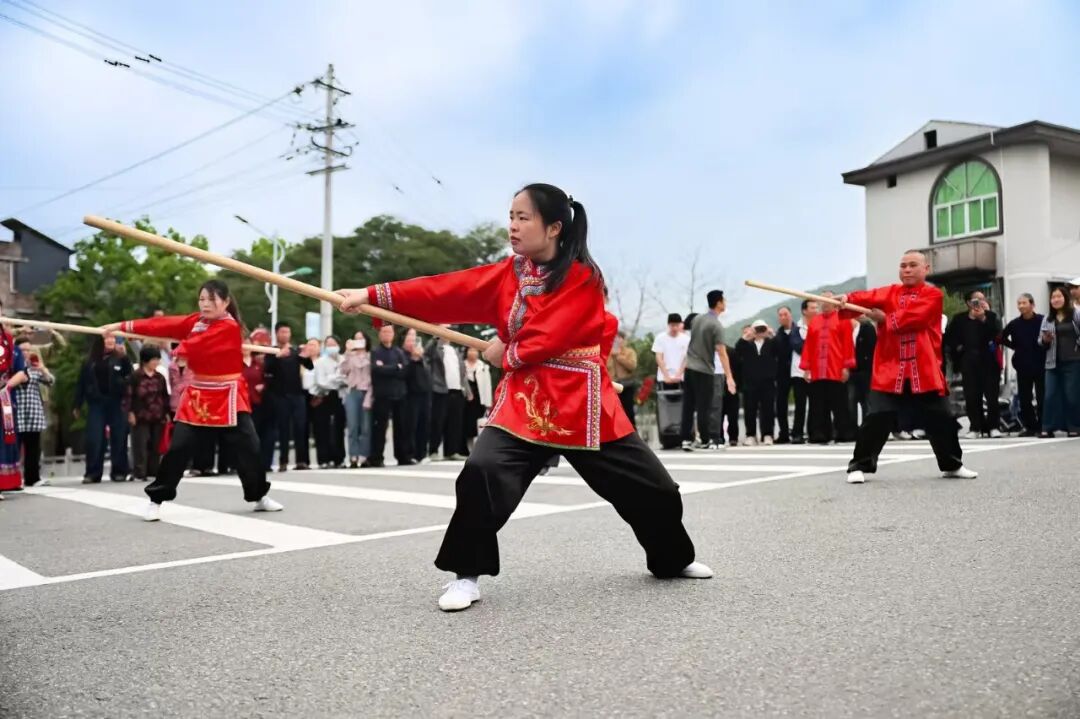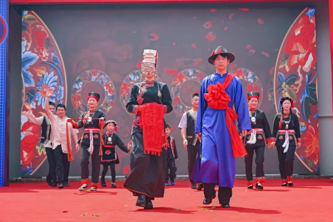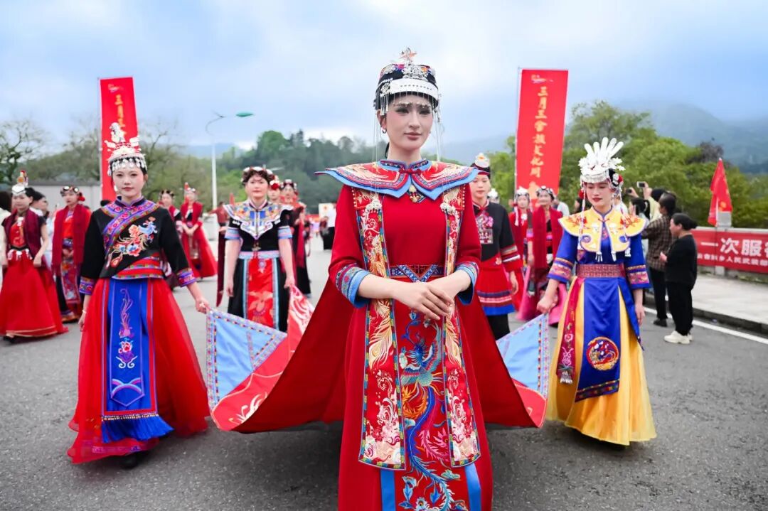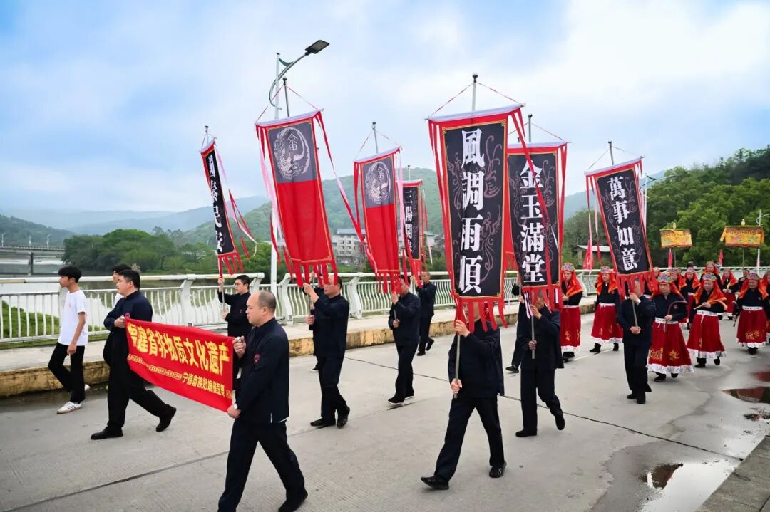 开幕式现场热闹非凡,穆云畲族乡民族融合街人声鼎沸,三月三主题踩街活动震撼启行。舞龙腰鼓、山哈祈福、公主巡游、畲族婚嫁、畲歌对唱、金斗洋畲族武术、民族大团结等八大方阵依次亮相,千米巡游路线、60分钟沉浸式体验,整条街区化身活态非遗展示长廊,畲族凤凰图腾、非遗武术、婚嫁民俗等文化尽显独特魅力,让这场民俗巡游成为展现福安民族文化、彰显韩台同源情谊的重要窗口。