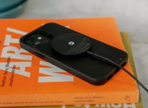 圆滑弧型包围着「mophie 标识」与「充电图案」